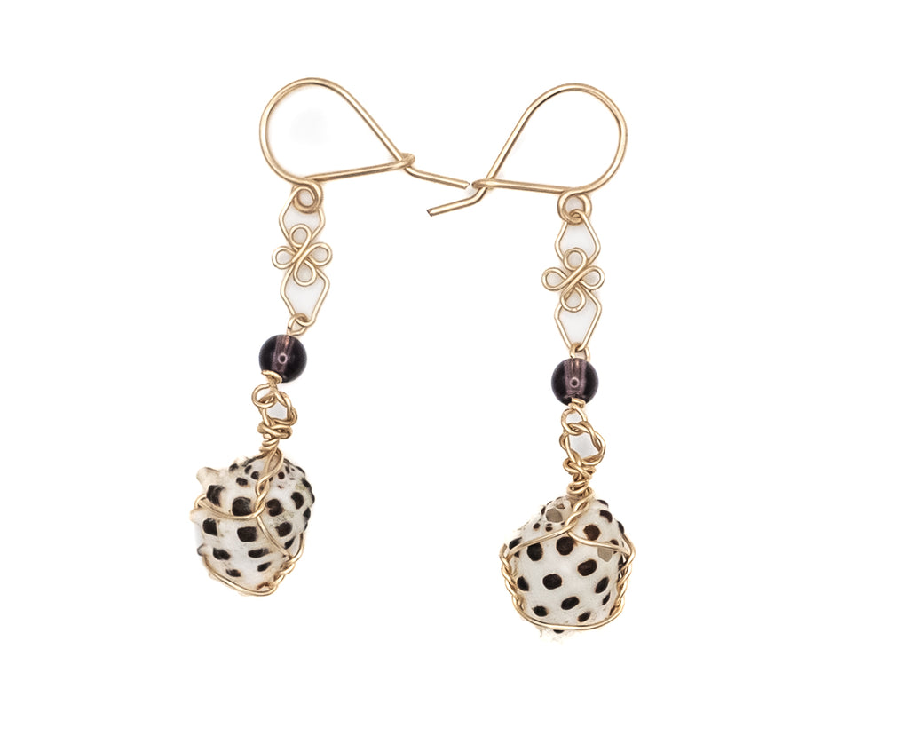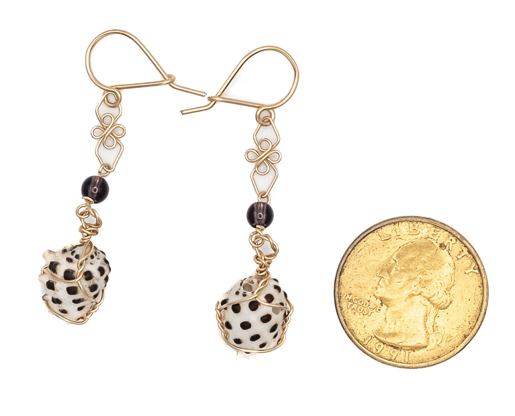HAWAIIAN SEASHELL WITH OBSIDIAN STONE IN 14 KT GOLDFIELD