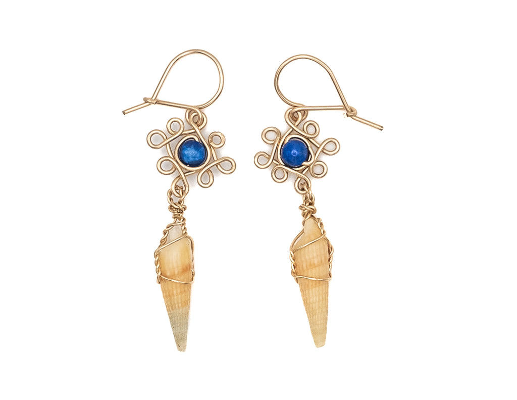HAWAIIAN SEASHELL WITH LAPIS LAZULI STONE IN 14 KT GOLDFIELD
