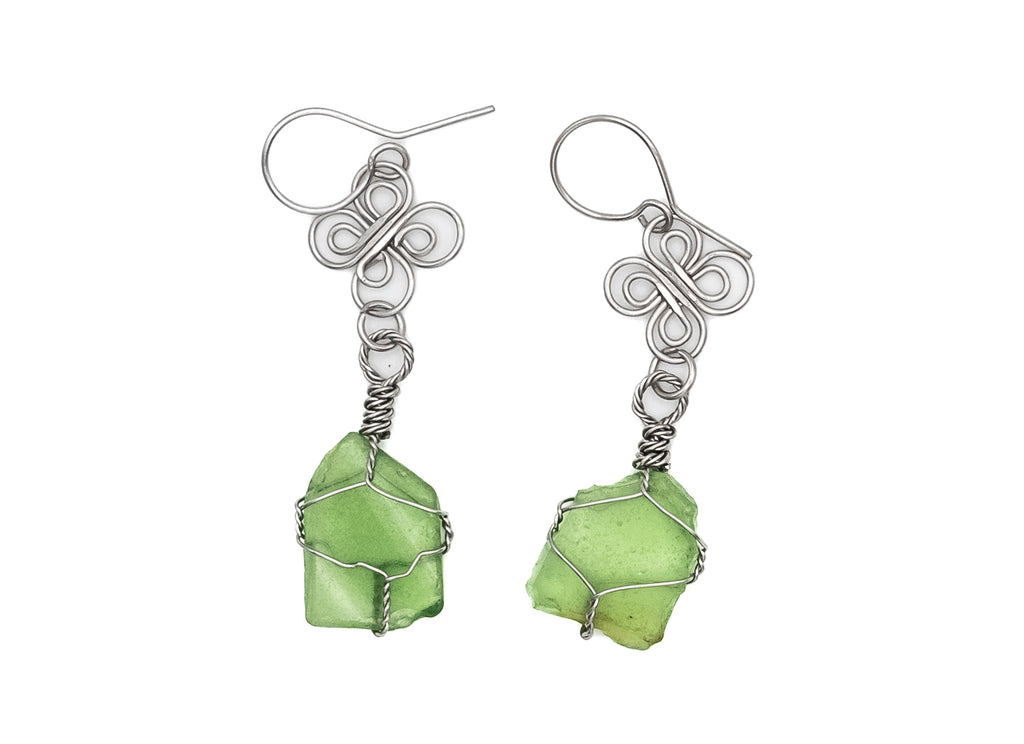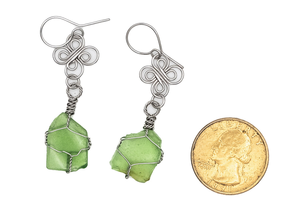 HAWAIIAN SEAGLASS PICKED UP ON WAIMEA BEACH IN STERLING STEEL WIRE. THIS MATERIAL IS HYPOALLERGENIC AND ANTIOXIDANT