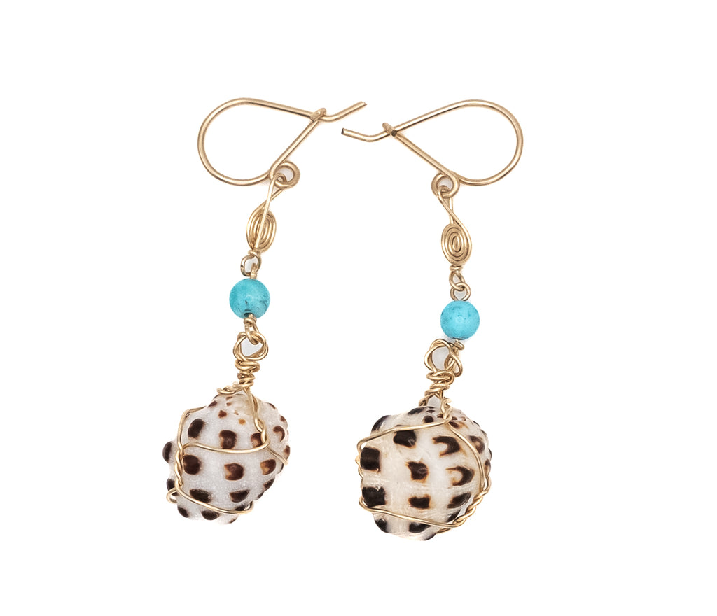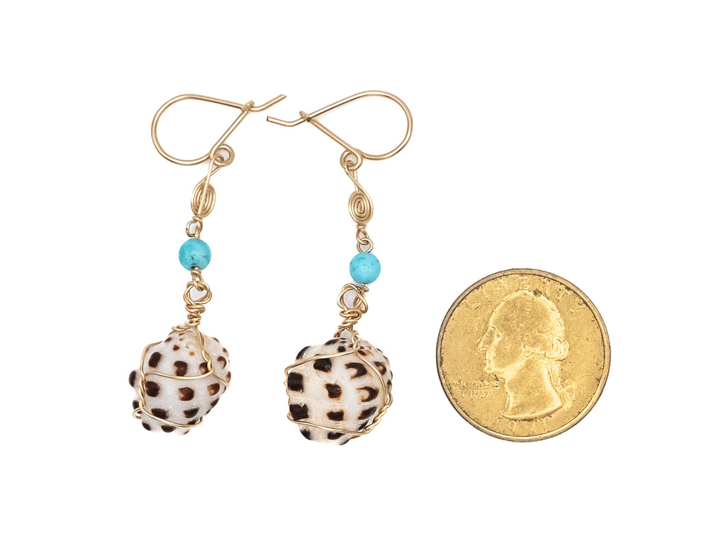 HAWAIIAN SEA SHELLS WITH TURQUOISE STONE IN 14 KT GOLDFIELD