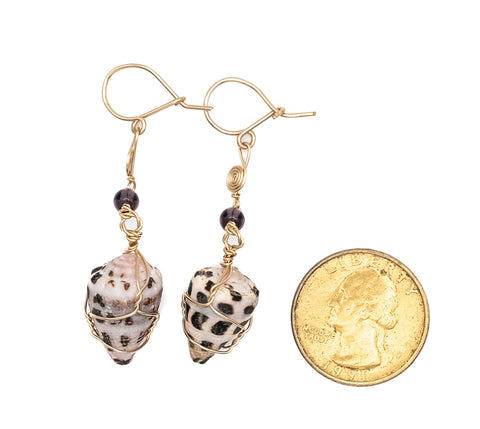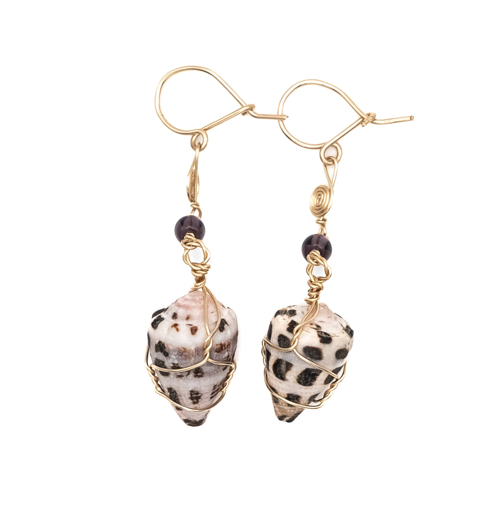 HAWAIIAN SEA SHELLS WITH OBSIDIAN STONE IN 14 KT GOLDFIELD