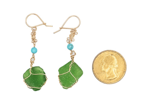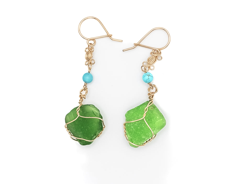 HAWAIIAN SEAGLASS WITH TURQUOISE STONE IN 14 KT GOLDFIELD