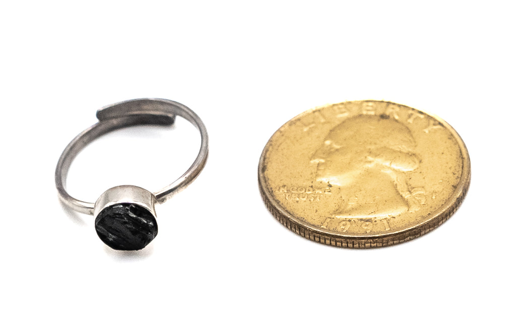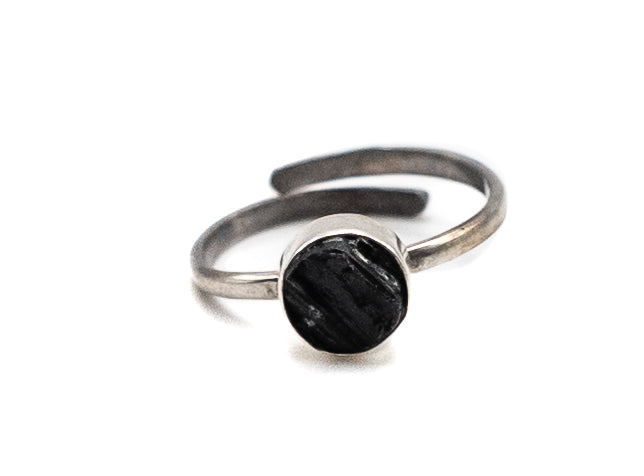 Adjustable sterling silver 9.50 ring with black turmaline stone.