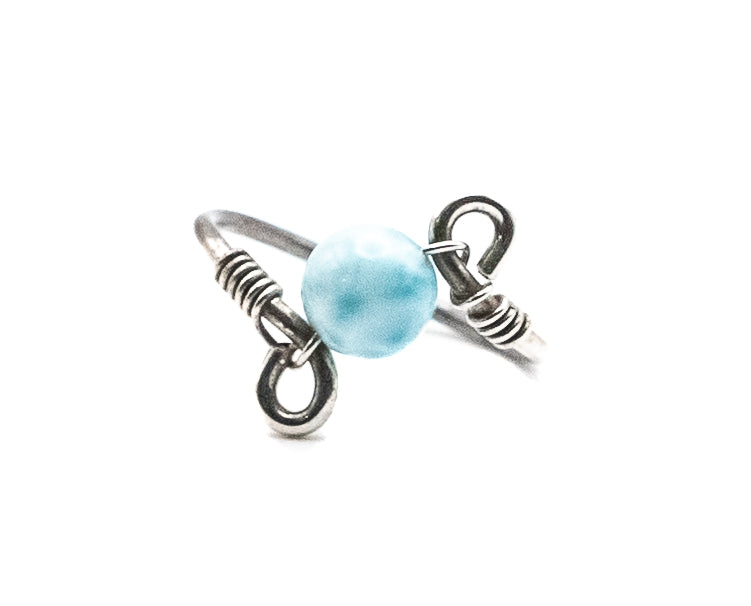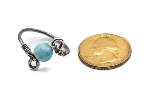 Larimar stone. You can choose your favorite metal like 14 kt goldfield, sterling silver or alpaca silver. They are adjustable.