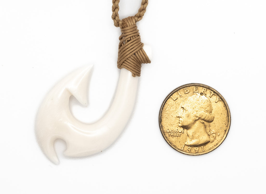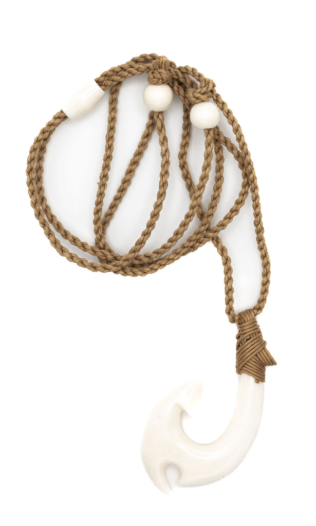 FISH BONE HOOK, HAND CARVED. WOVEN WITH WAXED THREAD.